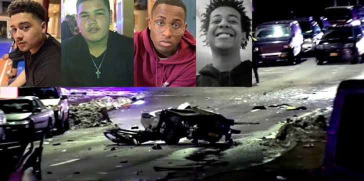 Los cuatro tenían 18 años de edad y estaban junto en el vehículo que fue partidos en dos, mitad a mitad por Devon Haywood, de 36 años, quien también murió en el choque y tenía un largo récord criminal que incluye varios arrestos y condenas por tráfico de drogas, según reveló la policía de Yonkers.