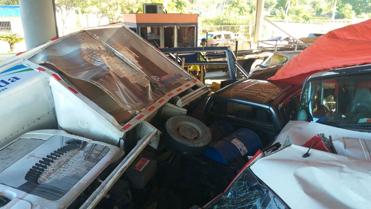 Según personas que presenciaron el hecho, el incidente sucedió debido a que un camión perdió los frenos, chocando otros dos vehículos, hasta impactar en la estación.