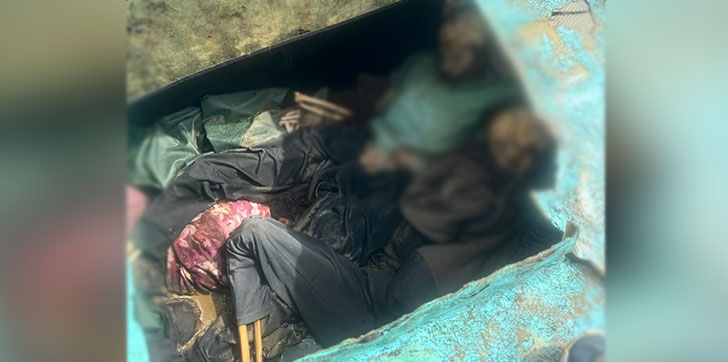 Dentro de la yola se observan varias partículas humanas, incluyendo cráneos y parte de las extremidades superiores. También se puede visualizar algunas prendas de vestir.