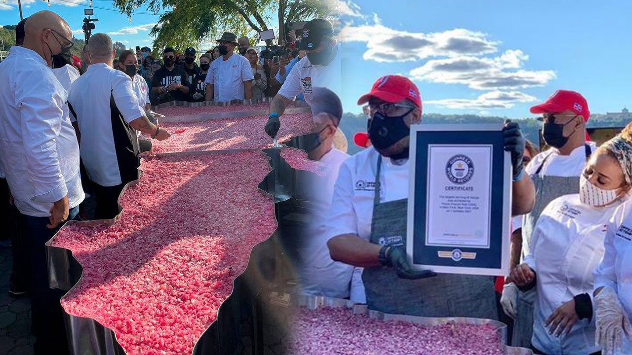 Para este reto, se pelaron más 260 libras de cebolla, sazonadas con naranja agria, y que fueron colocadas encima del mangú, que fue servido en una placa con la forma del mapa de la República Dominicana.