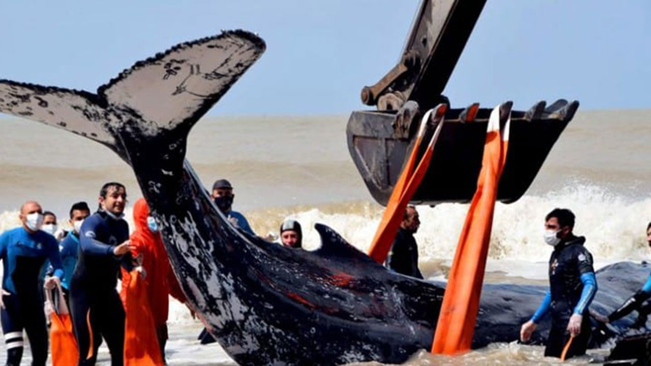 Rescatan a dos ballenas varadas en la costa argentina