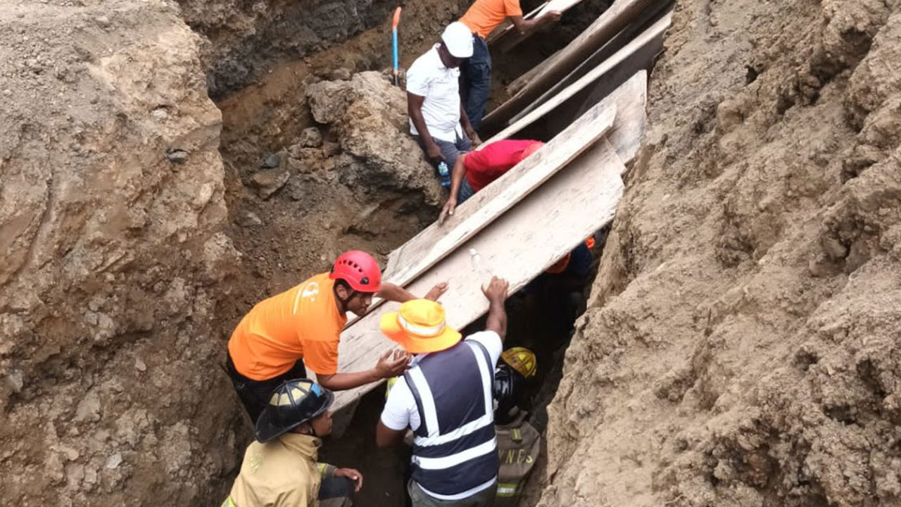 AGENDA56, SANTIAGO.- Tres personas quedaron atrapadas en medio de una excavación en trabajo de canalización de tuberías en el sector La Ciénega al oeste de la provincia de Santiago.