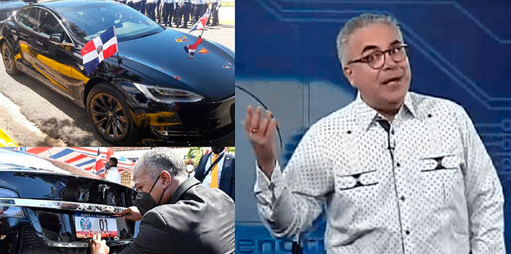 AGENDA56, SANTO DOMINGO.- El periodista Roberto Cavada cuestionó a través de su cuenta en la red social Twitter la procedencia del vehículo eléctrico Tesla utilizado por Luis Abinader y la primera dama Raquel Arbaje para llegar a la toma de posesión, al cual le pusieron la placa 01, de Presidente de la República Dominicana.