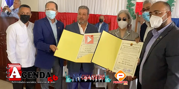 SAN FRANCISCO DE MACORÍS.- En un acto celebrado este domingo 28 de noviembre, la Sala Capitular de este municipio otorgó un reconocimiento, declarando como hijos adoptivos al ex senador de la provincia Duarte Hernani Salazar y su esposa Eglys Margarita Esmurdoc.