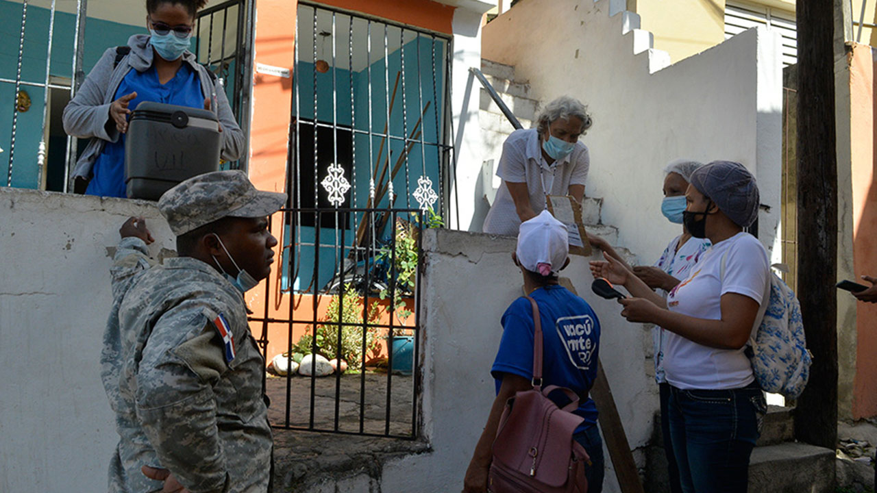 Así lo hicieron ayer trabajadores sanitarios del Área VII de Salud Pública, que en pequeños grupos y en compañía de un militar estuvieron vacunando por varias zonas de Santo Domingo Oeste.