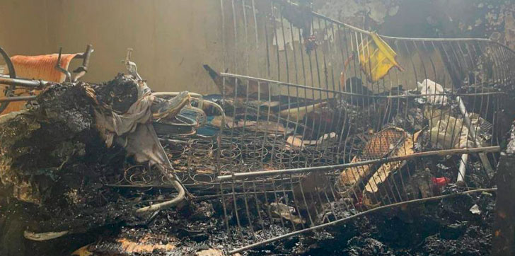 El incendio, que se sospecha fue causado por un abanico, provocó lesiones de consideración en los menores y consumió por completo los enseres del hogar.