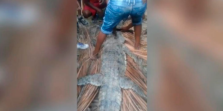En un audiovisual que circula en las redes sociales se observa el momento cuando los lugareños desollaban el reptil mientras se escucha de fondo decir a otros que no volverán a bañarse en ese lugar.