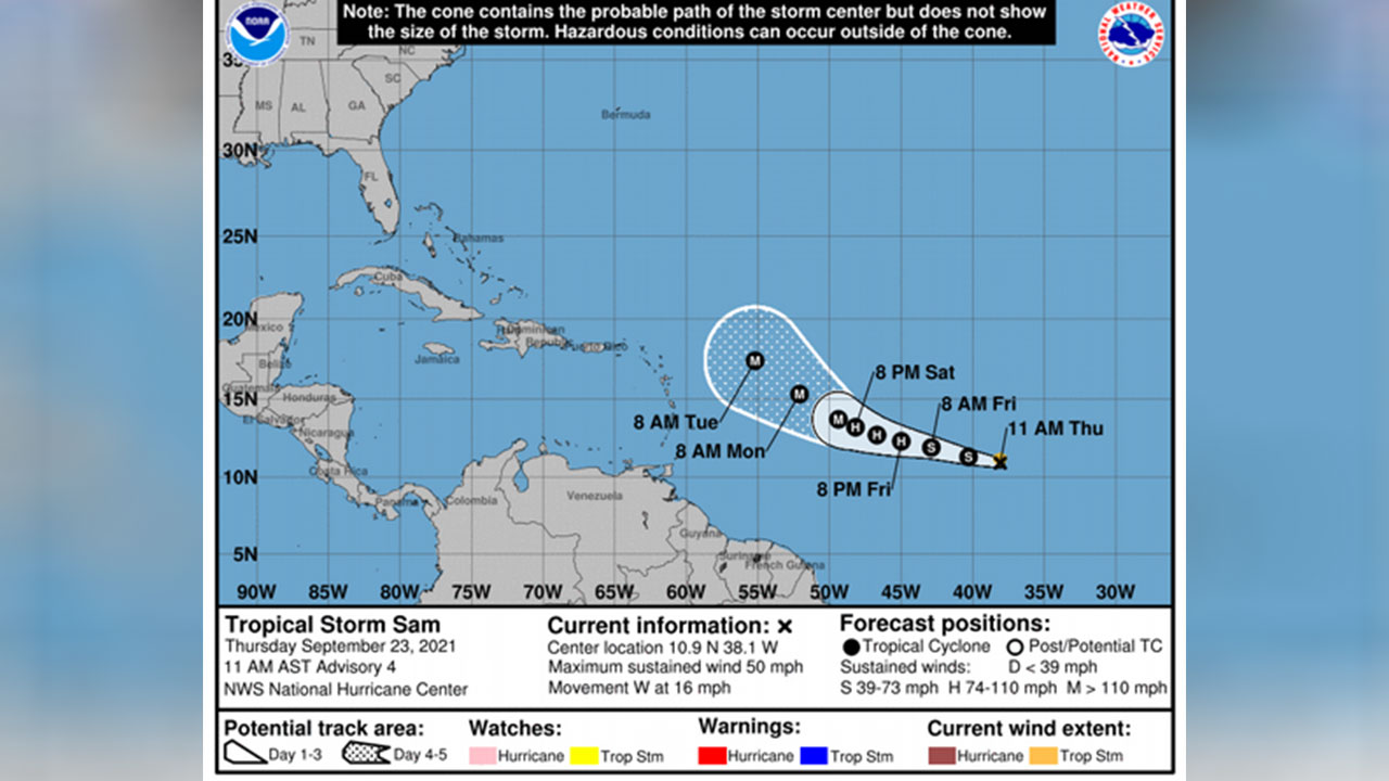 Se forma la tormenta tropical Sam y podría convertirse en un huracán mayor