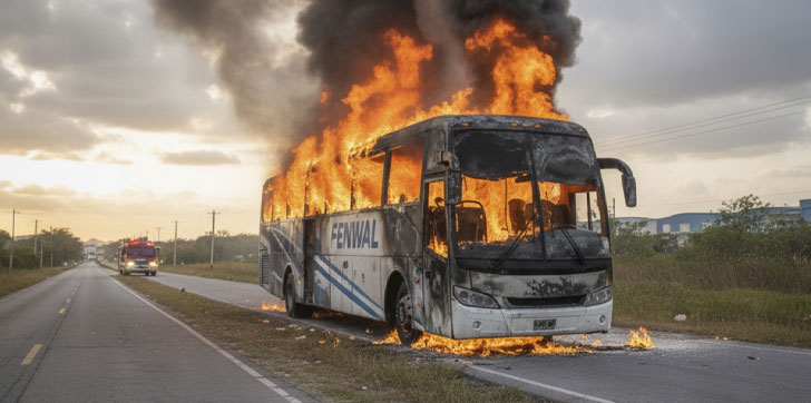 Se incendia autobús de empresa Fenwal; pasajeros salen ilesos