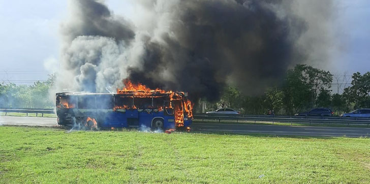 SANTO DOMINGO.– Un autobús se incendió este lunes cuando se desplazaba por la Autovía del Este en dirección hacia San Pedro de Macorís.