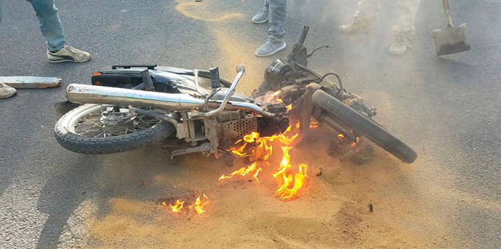 El motor marca Br-105 de color negro al parecer presentó un corto circuito en el ramal de la corriente incendiándose el mismo y afectando los plásticos de la motocicleta.
