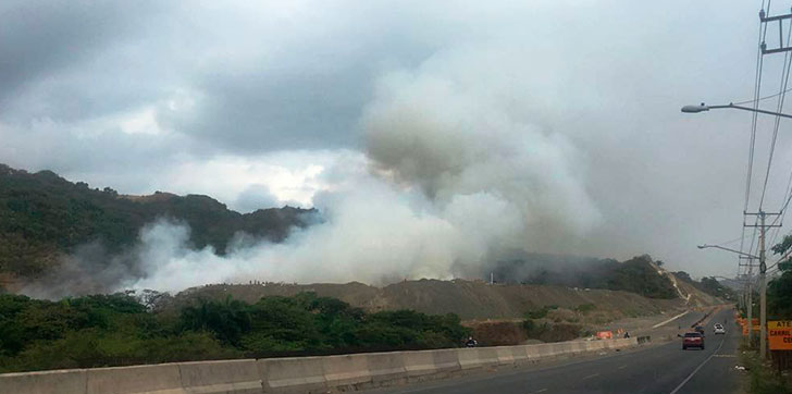La densa humareda que emana del gigantesco depósito de basura que desde hace décadas opera a cielo abierto en la comunidad Maggiolo, genera un feo espectáculo en la misma entrada a esta localidad turística.