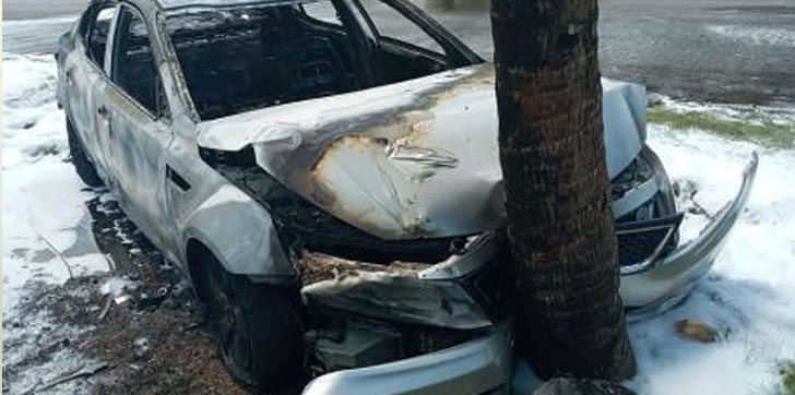 Se incendia vehículo tras chocar con mata de coco en Samaná