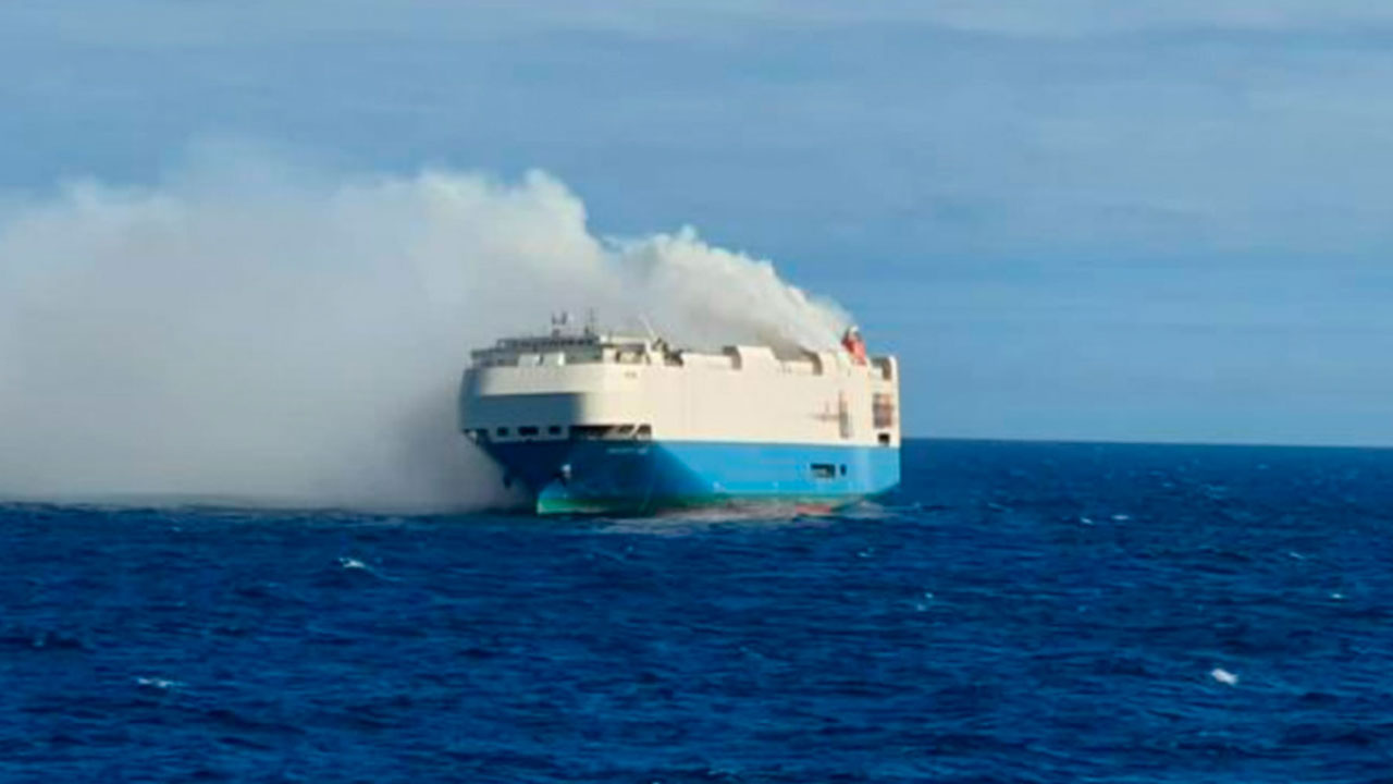Se incendió un barco repleto de autos de lujo y quedó a la deriva en medio del océano Atlántico