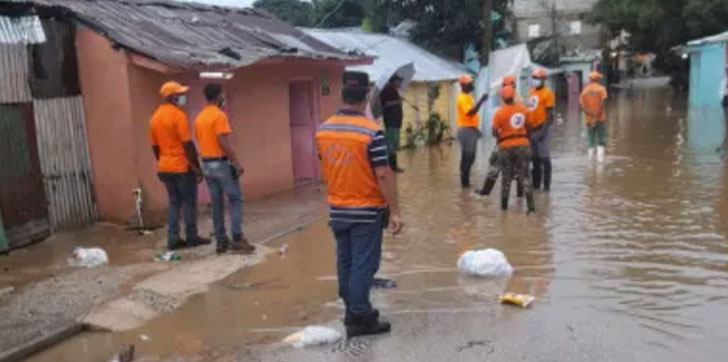Miembros de la Defensa Civil en Higüey, se presentaron a la barriada para brindar apoyo a las familias afectadas.