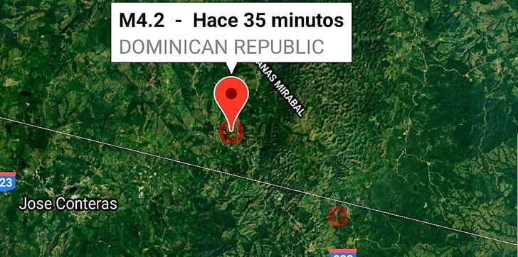 HERMANAS MIRABAL.– Un temblor de magnitud 4.2 se registró la madrugada de este domingo al norte de Salcedo.
