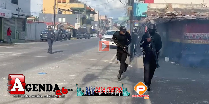 SAN FRANCISCO DE MACORÍS.- Agentes policiales pertenecientes a los diferentes organismos de seguridad del estado, sostuvieron un enfrentamiento con varios manifestantes en el sector San Martin de Porres “Rabo Chivo” de esta ciudad en medio del paro convocado por el Colectivo de Organizaciones Populares en esta ciudad.