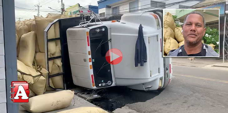 SAN FRANCISCO DE MACORÍS.- Un camión cargado de arroz se volcó la mañana de este jueves en la avenida Frank Grullón de esta ciudad.