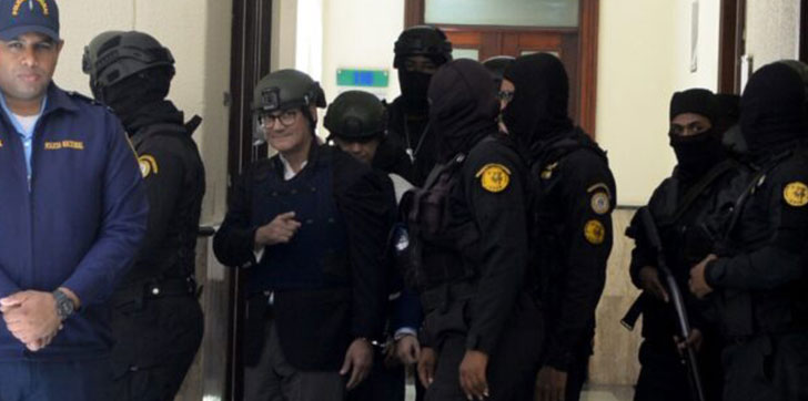 A su salida al baño en el receso que dio la jueza que conoce la solicitud de medida de coerción de los 20 imputados, simpatizantes vociferaban mensajes de apoyo al exministro de Obras Públicas y Comunicaciones.
