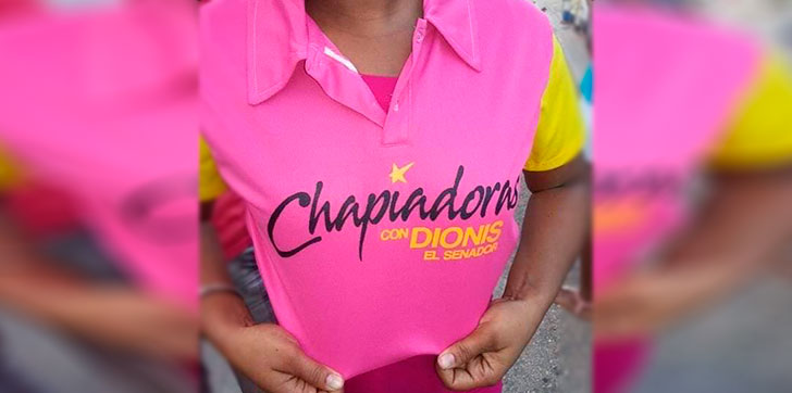 Sánchez que además es el principal promotor de la campaña del expresidente Leonel Fernández, se lució por las calles de Pedernales junto a varias mujeres que exhibían camisetas con la escritura “Chapiadoras con Dionis el Senador”.