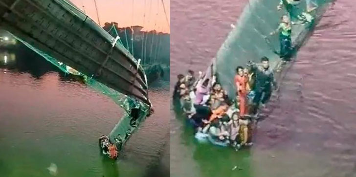 INDIA.- Al menos 120 personas murieron en India el domingo, cuando un puente colgante de la época colonial se hundió en el estado de Gujarat (oeste), haciendo que decenas de personas cayeran al río.