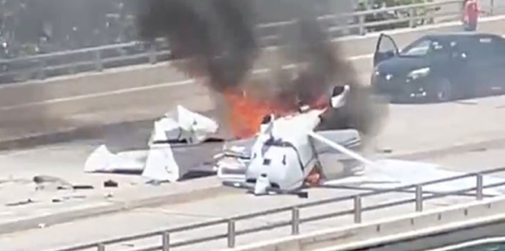 Avioneta se estrella en un puente de Miami y estalla en llamas