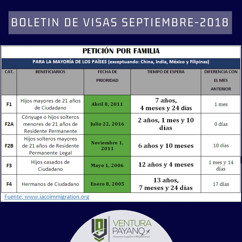 ¡ATENCIÓN beneficiarios de una petición familiar!, en esta ocasión traemos ante ustedes el boletín de visas de Septiembre 2018, publicado por…