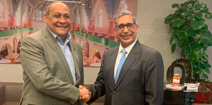 Doctor Ramón Mena visita a Rafael Santos, director general de Infotep