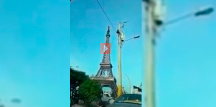 Joven intenta lanzarse de réplica de la Torre Eiffel en la 27 de Febrero