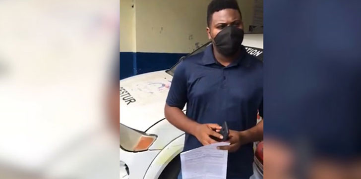 Asegura que nunca penetró al hotel y que luego de montar los pasajeros, los agentes del Intrant le fiscalizaron el vehículo, le permitieron hacer el servicio siguiéndolo y luego lo llevaron a Politur (Policía turística) donde le pusieron la multa. En el video muestra un documento en el cual supuestamente estaría la multa, pero no se observa lo que dice.