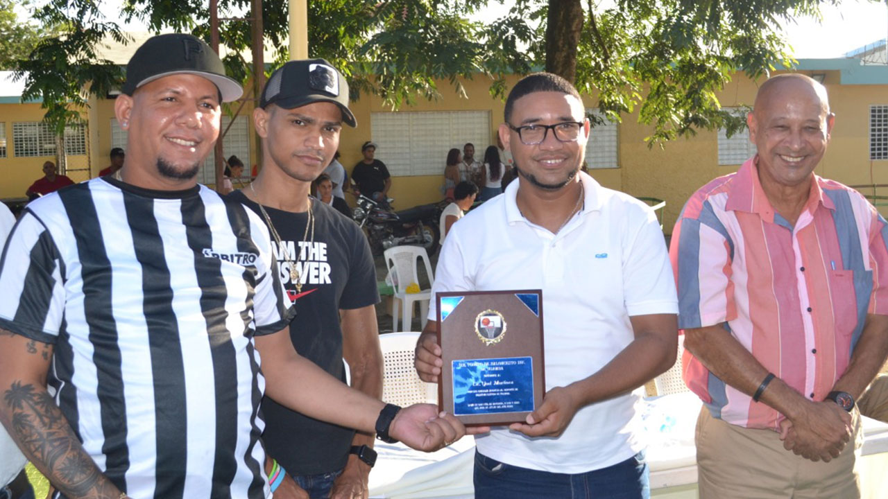 Luego el comité organizador entregó una merecida placa de reconocimiento al líder popular Joel Martínez por sus valiosos aportes en favor del deporte en el sector.