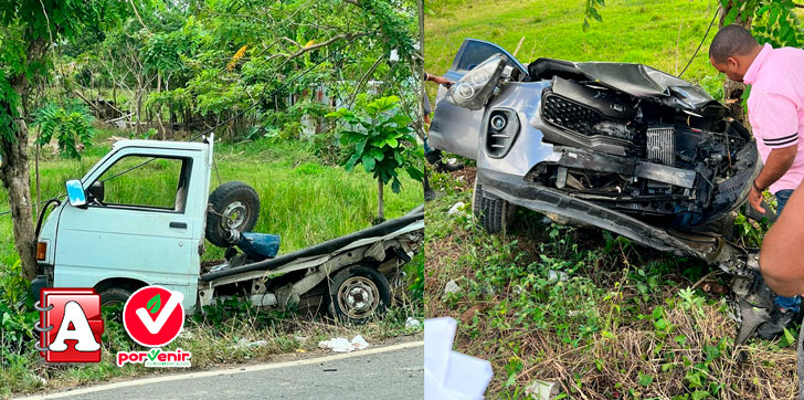 La fémina, quien viajaba a bordo de una jeepeta marca Kia, de gris, no sufrió ningún tipo de daños, pese al impacto del vehículo con un camión marca Dahaitsu.