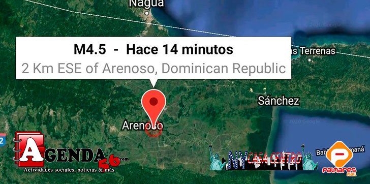 AGENDA56, DUARTE.- Un temblor de 4.5 se registró a las 8:06 minutos de la mañana de este miércoles con epicentro a 12.8 kilómetros al este de Arenoso en la provincia Duarte, al nordeste de República Dominicana.