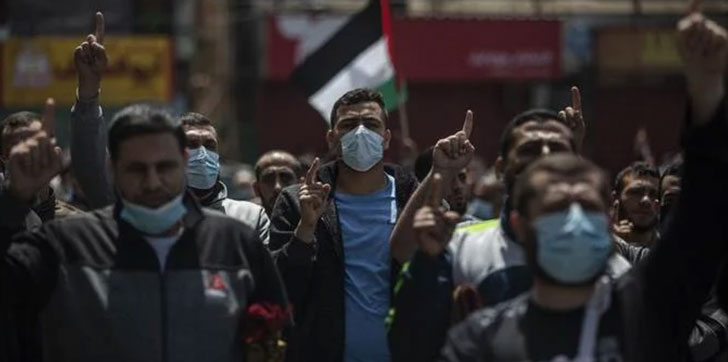 Al amanecer del sábado, cientos de personas desafiaron el toque de queda nocturno impuesto por Hamas para frenar la propagación del coronavirus y salieron a las calles en un acto de solidaridad con los palestinos en Jerusalén, y quemaron neumáticos.