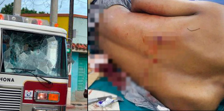 El personal que se transportada en la unidad del Cuerpo de Bomberos de esa ciudad resultó ileso tras el ataque, mientras que el camión quedó con todos los cristales rotos.