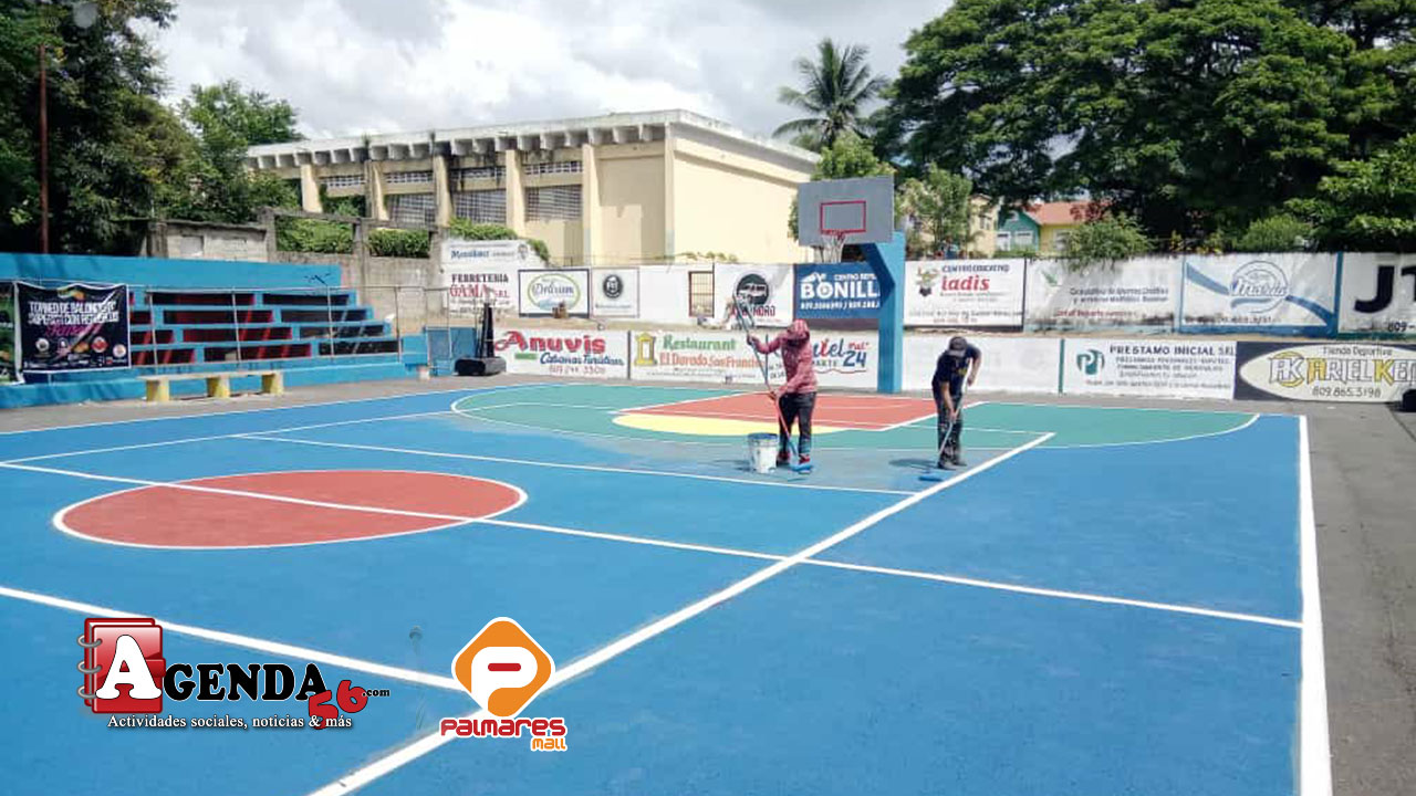 En la tarde de ayer obreros trabajaron arduamente en la pintura y reacondicionamiento de la cancha Pedro Emilio Reyes principal escenario de los esperado juegos deportivos en su versión número 30.