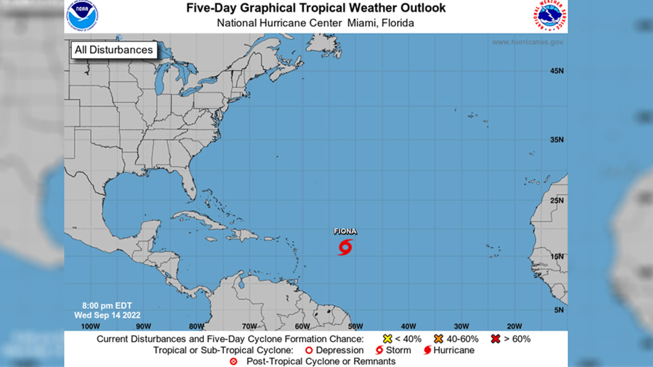 A las 8:30 de la mañana del jueves, Fiona se localizaba en la latititud 16,6 grados norte y 56,6, grados oeste, a unos 935 kilómetros al este de las islas de Sotavento, en las Antillas Menores.