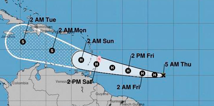 La tormenta tropical Gonzalo se fortalece, con vientos máximos sostenidos de 100 kilómetros por horas, moviéndose hacia el oeste a19 kph, con un giro hacia el oeste/noroeste el sábado. Se espera que se convierta en huracán el día de hoy.
