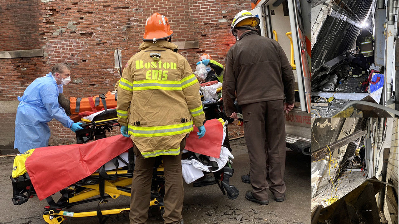 El dominicano fue transportado al Hospital General de Boston después que 1000 bomberos tuvieron que escarbar en los escombros auxiliados por rescatistas de los bomberos.