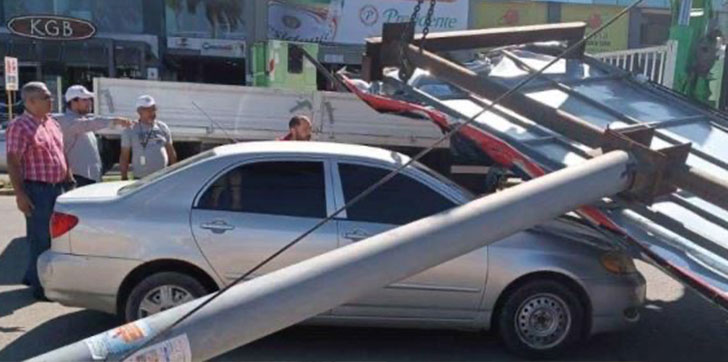AGENDA56, SANTIAGO- Tres personas resultaron con heridas leves tras caer una valla publicitaria en  la avenida Juan Pablo Duarte casi esquina Estrella Sadhalá, en Santiago.