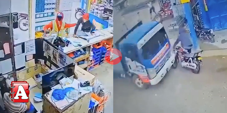 El atraco fue frustado por el conductor de un camión que se encontraba en el lugar, quien chocó al conductor de la motocicleta de los malhechores.