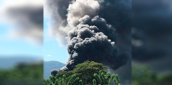 Todavía el Cuerpo de Bomberos, la  Defensa Civil y equipo de seguridad de la empresa permanecen en el lugar tratando de sofocar el incendio.