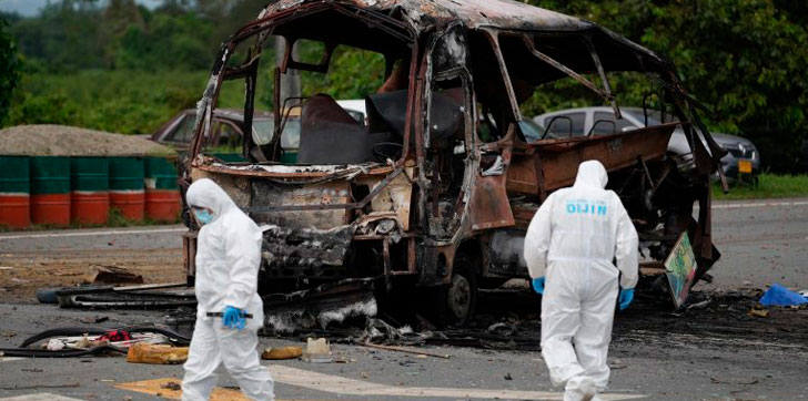 Este ataque se produce horas después de que tres bombas estallaran en distintos barrios de la Cali, capital del Valle del Cauca, dejando al menos dos personas muertas y 36 lesionadas.