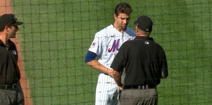 El jefe de cuadrilla Ron Kulpa corrió desde la tercera base y le pidió a deGrom su guante y su gorra, y el lanzador se los entregó entre risas. Kulpa los revisó y los devolvió, y luego le pidió que se desabrochara el cinturón para revisarlo.