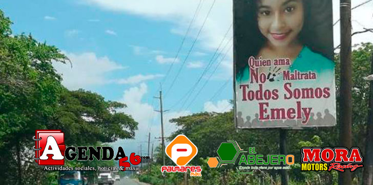 En la imagen está colocada la frase: “Quien ama no maltrata, todos somos Emely”. En la fotografía, la joven, quien tenía 16 años cuando le ocasionaron la muerte, está sonriendo cándidamente. Aunque no tiene nombre del autor del mismo, se presume que forma parte de una campaña contra la violencia hacia la mujer, dado el mensaje que tiene colocado. Se trata de un letrero que, aunque su dimensión no es muy grande, no pasa desapercibido para el transeúnte o conductor. Está a unos kilómetros de llegar a la ciudad.