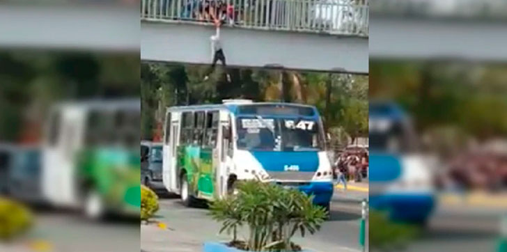 MÉXICO.– Un chófer de transporte público utilizó su bus para amortiguar la caída de una joven que buscaba suicidarse, lanzándose de un puente de 3 metros de altura.