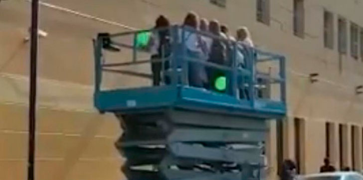 Un grupo de mujeres alquila una grúa para ver a su amiga hospitalizada