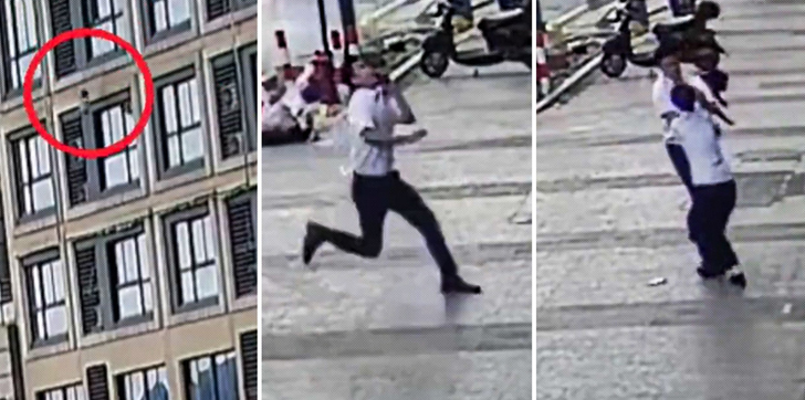 Un hombre atrapa a una niña que cayó de un edificio en China