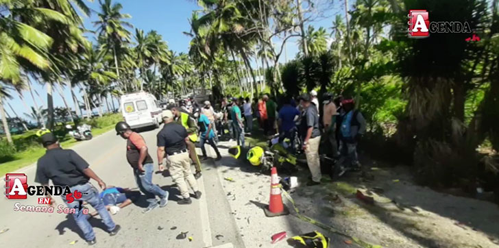 MARIA TRINIDAD SANCHEZ.- Un hombre hasta el momento sin identificar murió la tarde de este sábado y dos extranjeros resultaron con lesiones en distintas partes de sus cuerpos al estrellarse de frente las Motocicletas en que viajaban.
