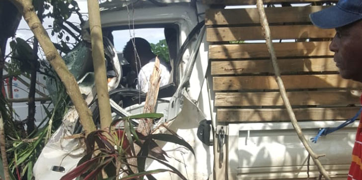 Un hombre muerto y otro herido tras colisionar camión contra árbol en Monte Plata